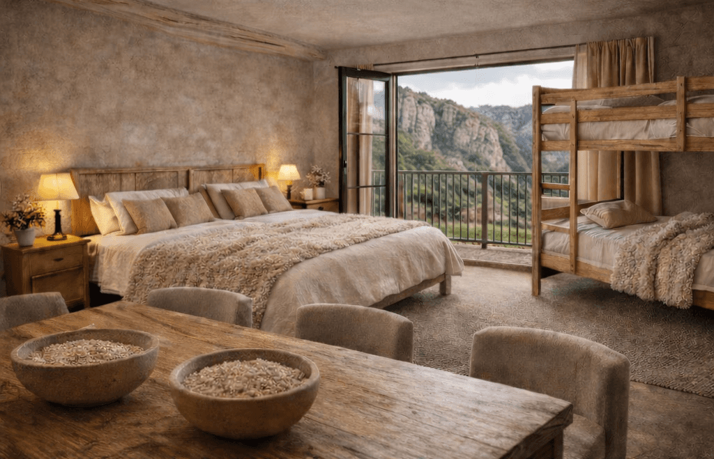 1 lit double 2 lits simples, canapé